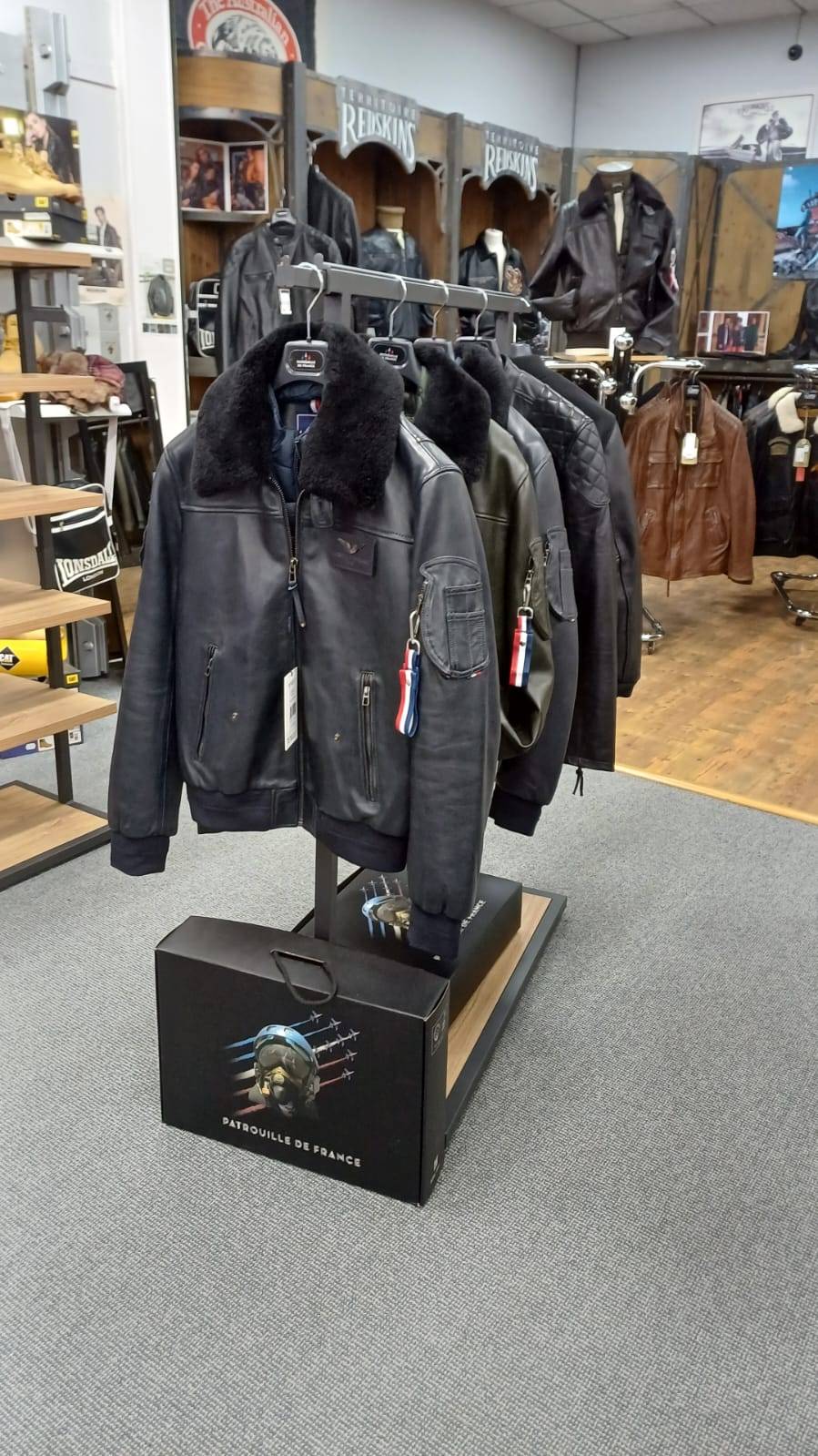 La pièce maîtresse de cette collection est sans conteste la veste en cuir Redskins « Patrouille de France ». Alliant héritage aéronautique et finitions haut de gamme, elle s’impose comme un investissement durable.